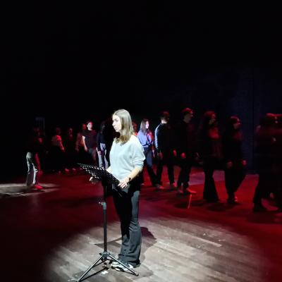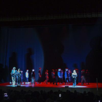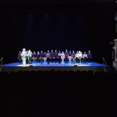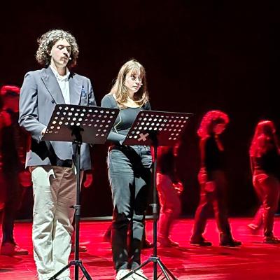 Con loro, successivamente al viaggio, è stato fatto un laboratorio di scrittura espressiva sul viaggio ad Auschwitz. Un percorso che i ragazzi hanno fatto insieme, coordinato dall'Associazione Culturale e Teatrale Alcantara, per raccontare l'esperienza vissuta e riuscire a rapportare la propria emotività. Con i loro racconti e i loro movimenti espressivi i ragazzi sono riusciti a creare una struttura drammaturgia narrativa molto suggestiva, che ha rapito l'attenzione del pubblico del Teatro Galli, dando un'idea concreta di ciò che hanno studiato e visto con i propri occhi.