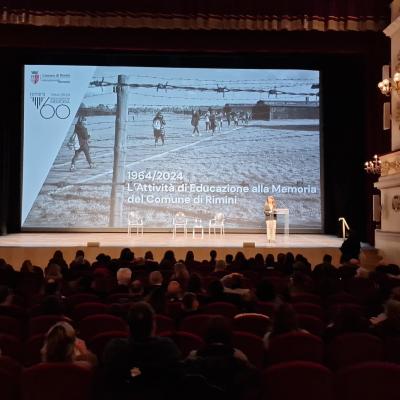 Si è svolto questo pomeriggio l'importante incontro pubblico al Teatro Galli per condividere con la cittadinanza il significato dell'Attività di Educazione alla Memoria. Un evento in cui si sono susseguiti contributi video, immagini, momenti formativi, testimonianze, oltre al ricordo delle persone che hanno contribuito a scrivere la storia di questi 60 anni di attività educativa rivolta ai giovani.