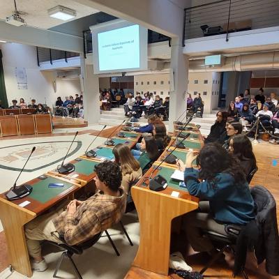 Erano 122 complessivamente i ragazzi presenti in aula, insieme a loro c’erano anche Giulia Corazzi, Presidente del Consiglio comunale, l’Assessora Francesca Mattei, Laura Fontana Responsabile Attività di Educazione alla Memora e Lidia Gualtiero tutor degli studenti. Provenienti da 10 differenti istituti, gli studenti riminesi hanno scelto di seguire le lezioni di questo importante percorso formativo che ogni anno, a partire dal 1964, viene riproposto, insieme a tante altre attività e iniziative culturali, organizzate dal Comune di Rimini e dall’Istituto per la Storia della Resistenza e dell’Età contemporanea della provincia di Rimini