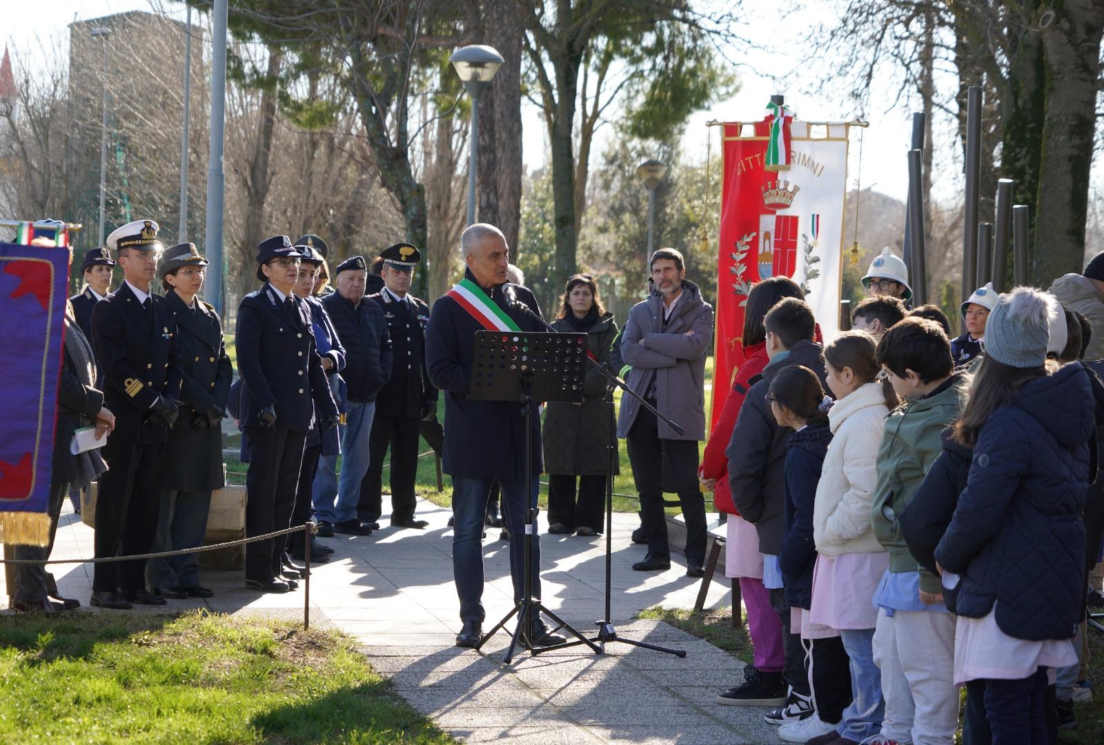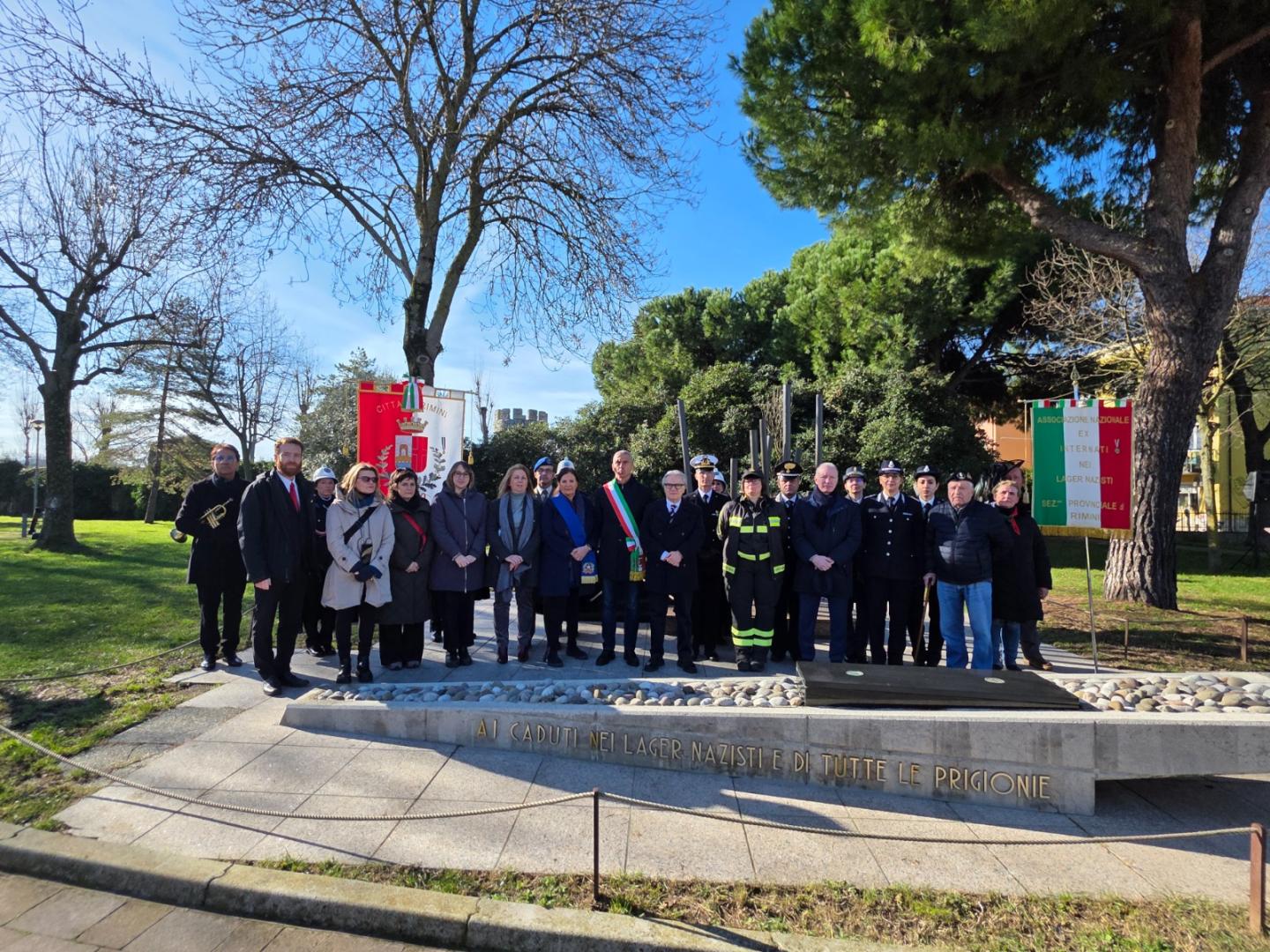 La cerimonia ha visto la partecipazione del Sindaco Jamil Sadegholvaad, del Viceprefetto Giuseppe Mario Puzzo, della Presidente dell'Associazione Nazionale ex Internati di RiminiSonia Tamburini, insieme alle autorità civili e militari e ai rappresentanti delle associazioni combattentistiche e d'arma con i rispettivi labari.