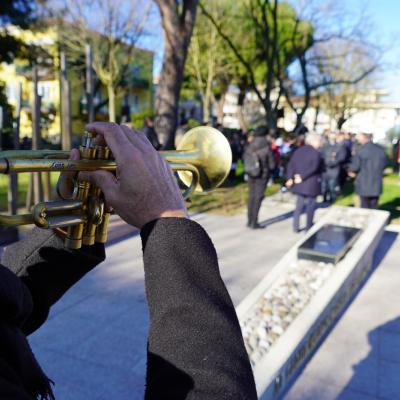 Sono stati i bambini della Scuola Elementare "Villaggio Nuovo" a rendere la cerimonia del Giorno della Memoria un momento davvero sentito e coinvolgente. Questa mattina, al Parco "Ai Caduti nei Lager 1943-1945" di via Madrid a Rivazzurra, le classi 5ª A e 5ª B hanno animato la commemorazione con canti, letture e riflessioni personali, trasformando il ricordo in un messaggio vivo rivolto al futuro. Con le loro voci e i loro pensieri, gli studenti hanno dato forza alla memoria delle vittime della Shoah, rendendo particolarmente toccante il momento della deposizione della corona d'alloro davanti al monumento che ricorda le vittime dei campi di concentramento nazisti e di tutte le forme di prigionia.