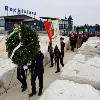 L’evento, come ogni anno, si è svolto con la deposizione di una corona di alloro ai piedi della “Biblioteca di Pietra”, sulla scogliera del nuovo molo, luogo simbolico dedicato all'esodo giuliano-dalmata, interamente costruito in pietra d’Istria. Un monumento realizzato nel 2014 grazie all'estro dell'artista riminese, nato a Fiume, Vittorio D’Augusta, che era presente alla celebrazione.