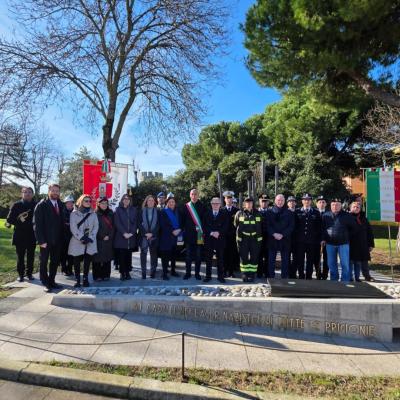 Cerimonia di deposizione di una corona di alloro al monumento dedicato alle vittime dei lager nazisti e di tutte le prigionie, alla presenza delle autorità civili e militari, dei rappresentanti delle associazioni combattentistiche e d’arma e di una delegazione studentesca